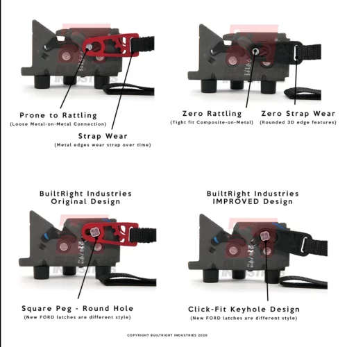 The first product we ever engineered, the Builtright Industries Rear seat release was made to make your life easier. It’s a simple solution to accessing the area behind the rear seat backs of your truck. Designed with an OEM-inspired nylon pull strap, releasing the rear seat latch is effortless. The bracket firmly holds the latch pull in place and also guides the strap towards the top of the seat for easy reaching. It works hard so you don’t have to.